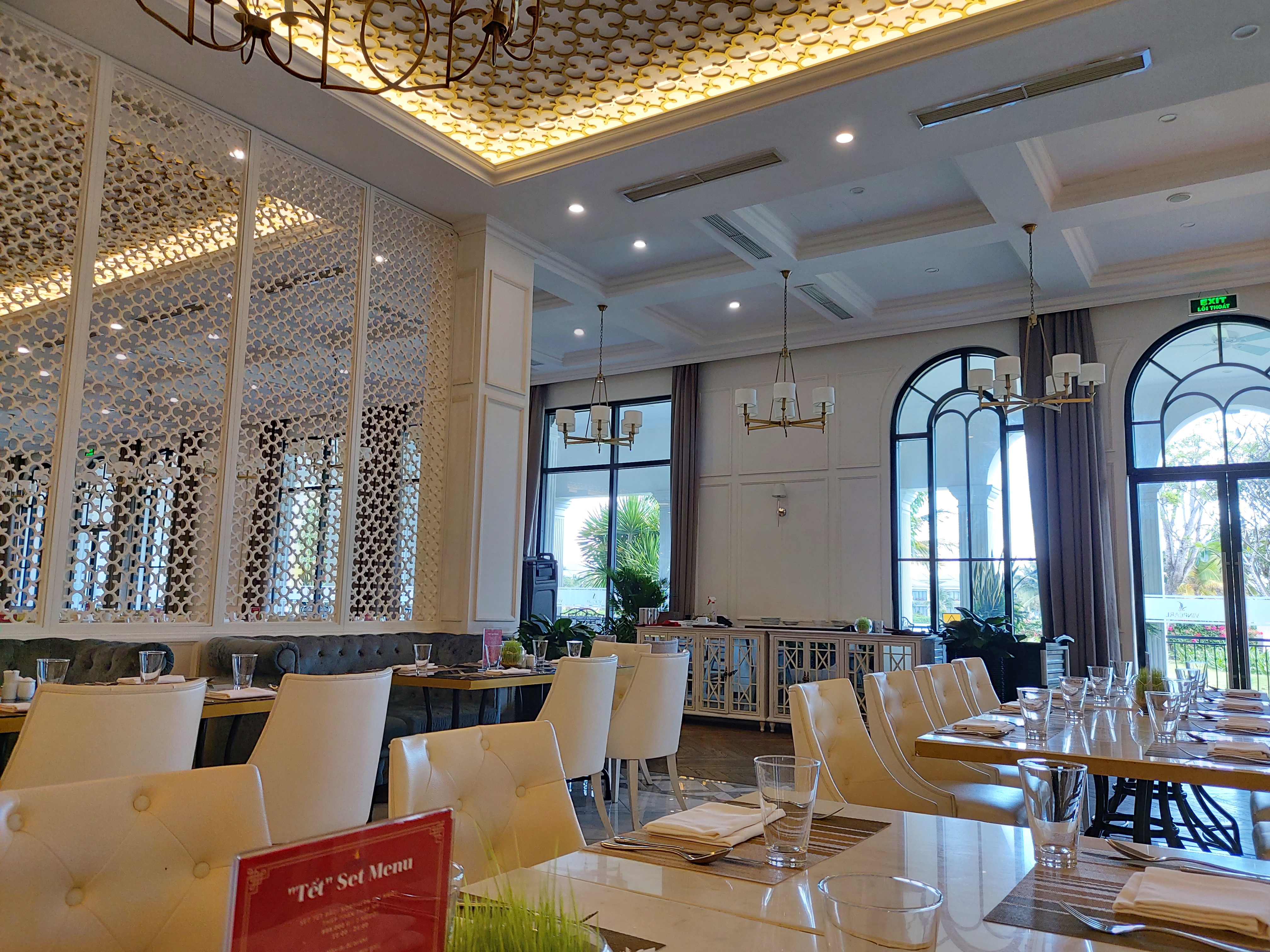 저녁 6시 30분에 방문 했는데 식당이 텅비어 있다. 실제로 주말 지나고 평일에는 불켜진 리조트 빌라가 몇채 보이지 않을 정도로 사람들이 많지가 않았다. 여유롭게 식사하고 여유롭게 시설을 이용해서 좋긴 했으나 다소 적막하다는 느낌도 들었다. 조식의 경우는 그래도 반 정도 차는 것 같지만 점심, 저녁은 사람이 거의 없다. 아무래도 가격적인 부담과 다양성등을 고려해서 조식만 예약하는 사람들이 많아서 일 것이다.