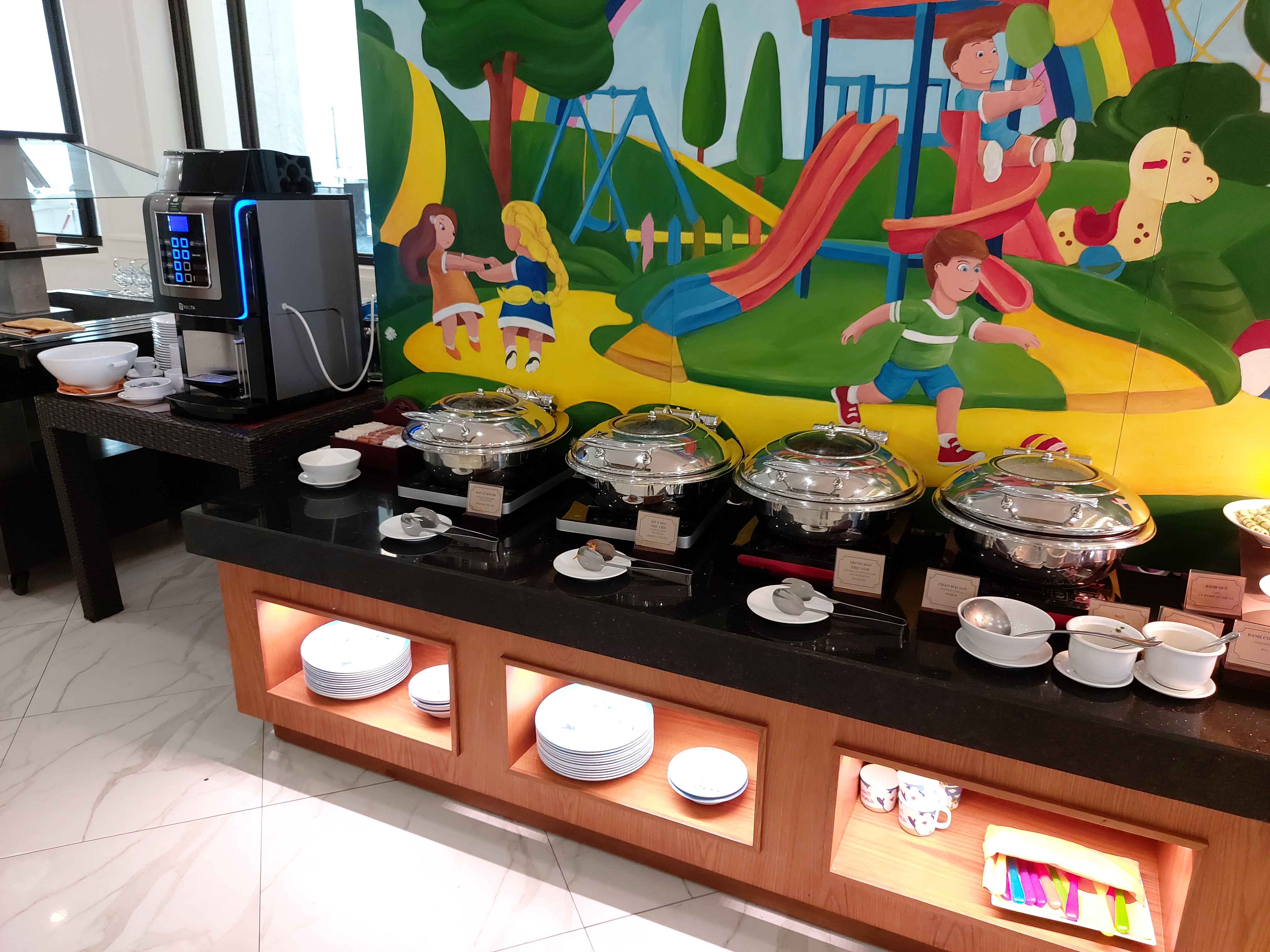 어른 기준으로 아침 45만동, 점심 50만동, 저녁 70만동이다. 12세 이하 어린이는 반 값이긴 한데 베트남 물가와 부페 수준에 비하면 비싼 가격이다.